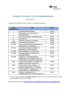Der Download unserer Medien ist kostenfrei. Ausgewählte Medien aus dem Themenbereich Bahn sind gegen eine Schutzgebühr als Printversion bestellbar (siehe Preisliste). Bitte beachten Sie unsere Informationen und Bestellhinweise für Nicht-Mitgliedsbetriebe.
