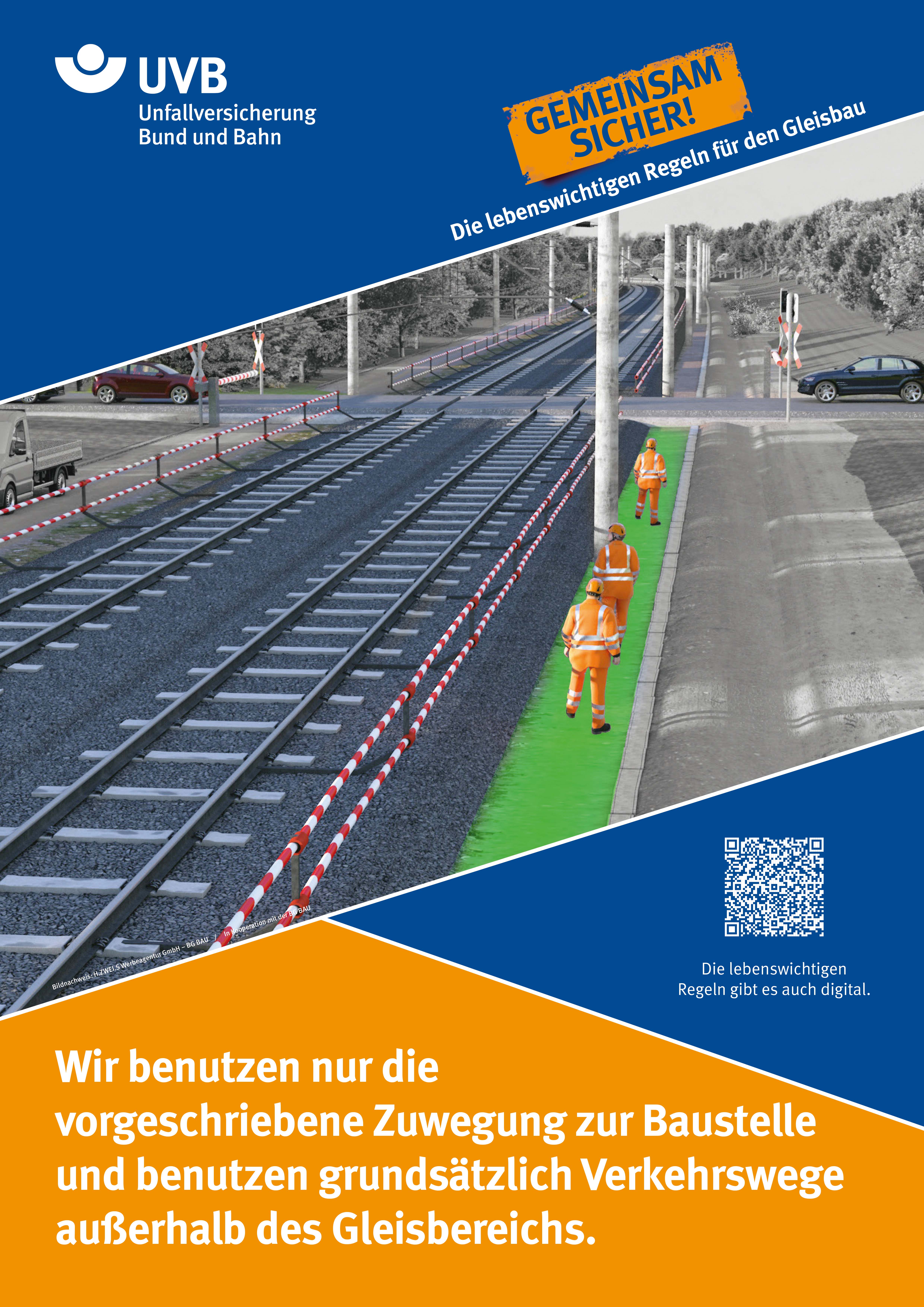Aufgrund der „Charta für Sicherheit bei Arbeiten und Sicherungsmaßnahmen im Gleisbereich“ wurden neun lebenswichtige Regeln im Gleisbau formuliert. Jede Regel wurde grafisch mit einem Positiv- und einem Negativbeispiel veranschaulicht. Die Regeln richten sich an alle Akteure im Gleisbereich und dienen dazu, das Unfallrisiko zu minimieren.